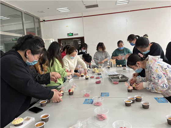 三月春风惹人醉 三月桃花为卿开 在这繁花竞开的时节里 三八妇女节如期而至 为庆祝三八妇女节,丰富集团女职工的业余文化生活,3月8日下午,后勤服务集团在清晏楼二层教师就餐区组织开展以“乐享烘焙,精彩生活”为主题的DIY烘焙活动,体验烘焙的乐趣,共享春日美好“食”光。