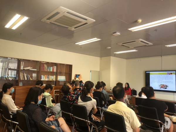 我校艺术学院金珂宇老师从中国传统民歌起源、民歌内容及体裁、民歌的多样风格、民歌《茉莉花》的相关介绍等四个方面出发,展示了中华传统民歌的文化风貌,同时一展歌喉,为老师们生动的演绎了民族歌曲,让大家更直观的感受了民歌的魅力。我校后勤服务集团的国家级健康管理师郑艺老师则从应该吃什么、为什么推荐、对健康的重要性、日常生活如何实现四方面解读了《中国居民膳食指南》,进一步提高大家的健康意识,引领吃饭“新潮流”。