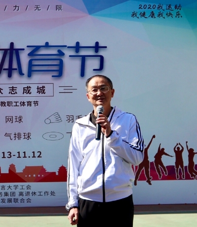 为落实学校第九次党代会精神,丰富教职工体育文化生活,10月13日中午,校工会在篮球场正式启动了“奋进北语 众志成城”2020年北京语言大学教职工体育节,党委书记倪海东、党委副书记魏晖出席了启动仪式。