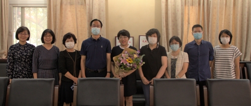 副校长张旺喜慰问从事教育事业满三十年教师代表施春宏教授