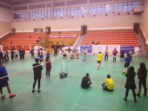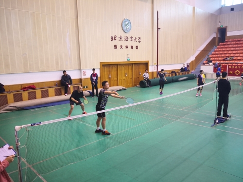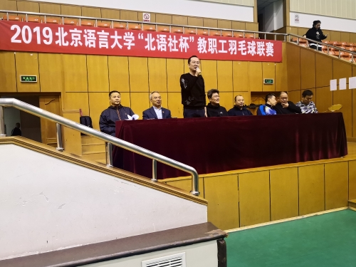 11月9日,由校工会主办的2019年北京语言大学体育健康月活动——“北语社杯”教职工羽毛球比赛在逸夫体育馆举行。张宝钧副校长出席比赛开幕式并宣布开赛,校工会常务副主席曾东、羽毛球协会会长杨旭发表讲话,开幕式由校工会赵冠群主持。