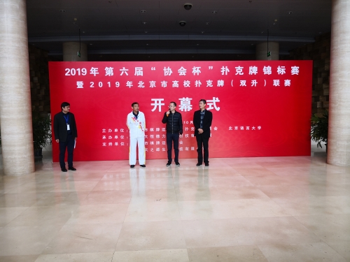 比赛由北京市棋牌运动协会扑克牌委员会、北京语言大学共同主办,北京大恒德力文化科技有限公司承办,北京市棋牌运动协会会长李毅、北京语言大学工会常务副主席曾东出席比赛开幕仪式并发表致辞。