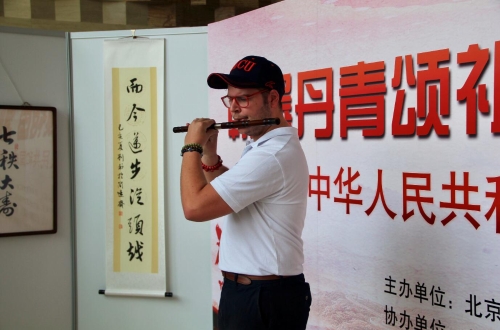 本次专题书画展吸引了众多老师及留学生前来参观,开幕式上北语留学生为大家演奏了中国传统乐器横笛及古筝。