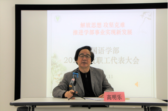 随后,学部主任高明乐做了年度工作报告,从学科建设、专业和课程建设、人才培养、科研成果、学生就业、疫情防控等方面向与会代表汇报了本年度学部各项工作的开展情况。高老师表示,2020年是不平凡的一年,全体教职工为学部各方面的工作做出了很多贡献,取得了长足进步。在新发展格局下,学部将积极响应“新文科”发展战略,“守正出新”,保持原有学科优势,根据我校现有资源和国家战略需要,积极推进一流学科、一流专业建设,推进学部事业实现新发展。