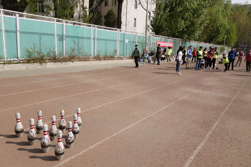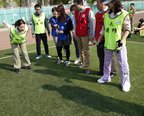 全院教工分为红、黄、蓝三个队,分别由郭书林、于淼、王枫三位老师任领队。本着“安全第一,友谊第二,比赛第三”的原则,本次运动会在拾贝比赛中拉开帷幕。此外,还设置了能量传递、趣味保龄球和立定跳远接力3个比赛项目。这些项目中有的是考验团队协作能力,如拾贝需要两人一扔一接默契配合;再如能量传递,更是需要六个人反复练习、协力作战、在平稳中求速度。而像趣味保龄球、立定跳远接力这两个项目,则需要三个队斗智斗勇,不仅对参赛队员的能力有要求,更重要的是考验团队排兵布阵的能力。